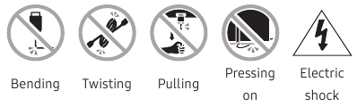 Do not use the One Connect Box in the upside-down or upright position. - Take care not to subject the cable to any of the actions below. The One Connect Cable contains a power circuit.