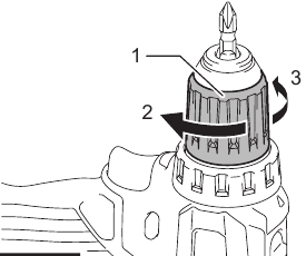 Turn the sleeve counterclockwise to open the chuck jaws. Place the driver bit/drill bit in the chuck as far as it will go. Turn the sleeve clockwise to tighten the chuck. To remove the driver bit/drill bit, turn the sleeve counterclockwise.