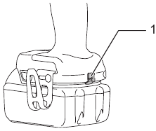 To install the battery cartridge, align the tongue on the battery cartridge with the groove in the housing and slip it into place. Insert it all the way until it locks in place with a little click. If you can see the red indicator as shown in the figure, it is not locked completely.