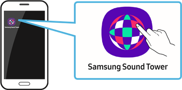To launch and use the Samsung Sound Tower app, touch the Samsung Sound Tower icon on your smart device, and then follow the directions on the screen.