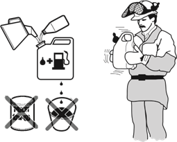 - Remove the spark plug and put approximately 15 ml of two-stroke oil into the cylinder. Turn the product 3 times and install the spark plug again.