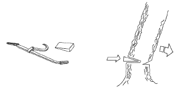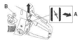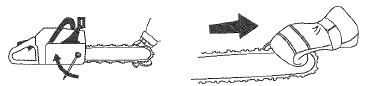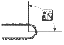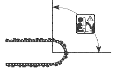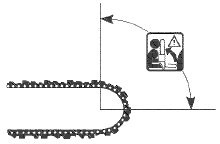 ![]() | Tip contact may cause the guide bar to move suddenly upward and backward (so called kickback), which may cause serious injury. |