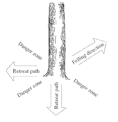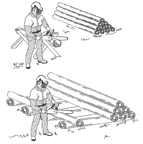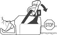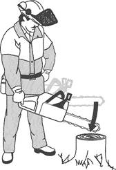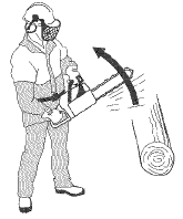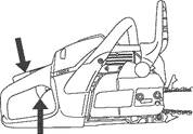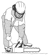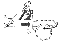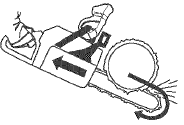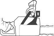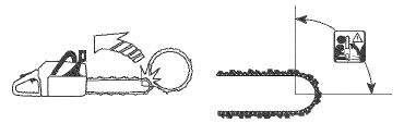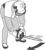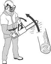 There are also certain positions in which your hand cannot reach the front hand guard to activate the chain brake; for example, when the saw chain is held in felling position.