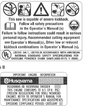 Chain saw model Husqvarna 455 Rancher 460 met the kickback performance requirements of ANSI B 1751-2000 when tested with the combinations of bars and saw chains listed below. The saw chains Husqvarna H30, HBO and H81 are also classified as a low kickback saw chain since it met the requirements for low kickback saw chain outlined in ANSI B 1751-2000. We recommend to use only the listed combinations of bars and chains for chain saw model Husqvarna 455 Rancher. Other chain saw models may not meet the kickback requirements when equipped with the listed bar and chain combinations.