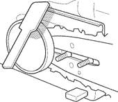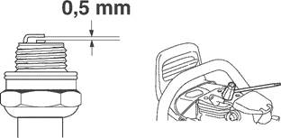 | Clean the chain brake and check that it operates safely. Make sure that the chain catcher is undamaged, and replace it if necessary. | Check that the vibration damping elements are not damaged | Clean the spark plug. Check that the electrode gap is 0.5 mm (0,020 inch). |
