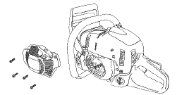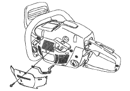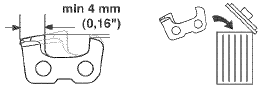 | Check the saw chain with regard to visible cracks in the rivets and links, whether the saw chain is stiff or whether the rivets and links are abnormally worn. Replace if necessary. | Clean or replace the spark arrestor mesh on the muffler. | Empty the fuel tank and clean the inside. |