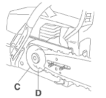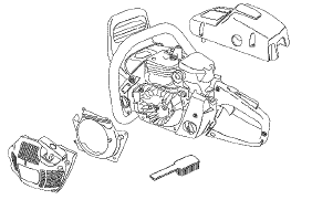 | The bar should be turned daily for more even wear. Check the lubrication hole in the bar, to be sure it is not clogged Clean the bar groove. If the bar has a sprocket tip, this should be lubricated | Lubricate the clutch drum bearing. | Clean the outside of the carburetor. |