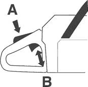 The throttle lock is designed to prevent accidental operation of the throttle control. When you press the lock (A) (i.e. when you grasp the handle) it releases the throttle control (B). When you release the handle the throttle control and the throttle lock both move back to their original positions. This arrangement means that the throttle control is automatically locked at the idle setting.