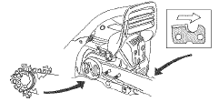 | Sharpen the chain and check its tension and condition. Check the drive sprocket for excessive wear and replace if necessary. | Clean the carburetor compartment. | Empty the oil tank and clean the inside. |