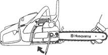 ![]() | The chain brake must be engaged when the chain saw is started. |