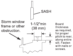 If Storm Window Frame must remain, be sure the drain holes or slots are not caulked or painted shut. Accumulated Rain Water or Condensation must be allowed to drain out.