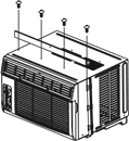 Turn AC off and disconnect power cord. Remove sash seal from between windows and unscrew safety sash lock. Remove screws installed through frame and frame lock. With 2 people, keeping a firm grip on air conditioner, raise sash and carefully remove. Be carefully not to spill any remaining water while lifting unit from window. Store parts WITH air conditioner.