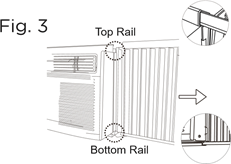 - Align the holes in the top rail with those in the top of the unit as shown in Fig. B