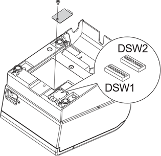 Be sure to turn off the printer before removing the cover of the DIP switches. Removing it while the printer is turned on may cause problems such as an electric short, which leads to a malfunction of the printer.