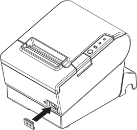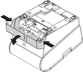 To remove the connector cover, turn the printer over, and push the connector cover down while pushing both sides of the connector cover inward to detach the hooks from the printer case.