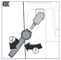 | The pre-ground coffee compartment is clogged | Switch off the machine and remove the brew group. Open the lid of the preground coffee compartment and insert the spoon handle into it. Move the handle up and down until the clogged ground coffee falls down (Fig. 30). | |
