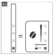 | The machine is performing its selfadjustment procedure. This procedure is started automatically when you use the machine for the first time, when you change to another type of coffee beans or after a long period of non-use. | Brew 5 cups of coffee initially to allow the machine to complete its self-adjustment procedure. | |