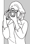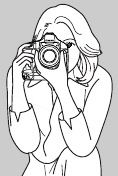 As shown on the right, hold the camera firmly so it does not move while shooting.