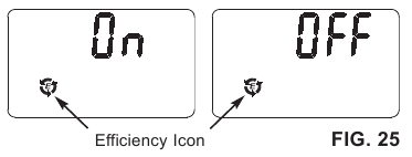 When this feature is ON, the water softener will operate at salt efficiencies of 4000 grains of hardness per pound of salt or higher (May recharge more often using smaller salt dosage and less water). The softener is shipped with this feature set OFF.