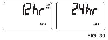 At the default setting, all clock displays are shown in 12 hour time format (AM and PM). If 24 hour time format is desired, follow the steps below: