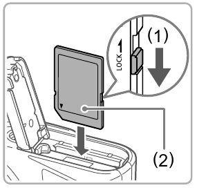 - Check your card's write-protect switch and insert the memory card.