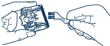 - Brush any hair trimmings out from between the stationary blade and the moving blade while pressing down the cleaning lever to raise the moving blade.
