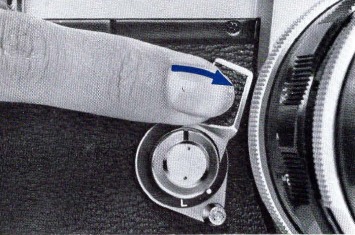 When the safety lock lever around the shutter release button is turned to the "L" position, the shutter is locked and will not move. This device may be used when the camera is carried in a wound condition.