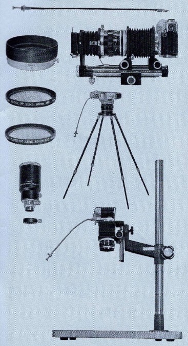 Various types of 48mm (for FL 50mm F 1.8) and 58mm (for FL 50mm F 3.5, F 1.4, 55mm F 1.2) screw-in type filters are available for special effects in both color and black and white photography. The TTL exposure measurement system of the Canon FT does not require exposure factor compensation.
