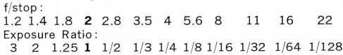 - The ratio between the aperture and the amount of exposure, using f/2 as the basis, is as follows: