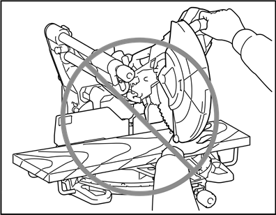 ![]() | To avoid injury from flying debris, keep holding the saw head down, after making cuts, until the blade has come to a complete stop. |