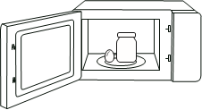 Glass jars ![]() | Always remove lid. Use only to heat food until just warm. Most glass jars are not heat resistant and may break. | ![]() |