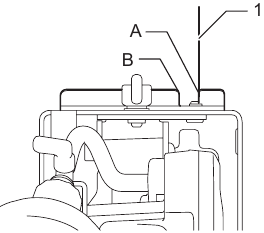 Attach the tank on the tank holder so that the tank holder fits between the step and dots. Connect the cap on the tube end to the mouth of the tank. Turn the tank clockwise. Then tighten the screw B.