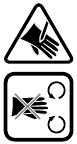 Rotating blade. Keep hands and feet out of openings while the machine is running.