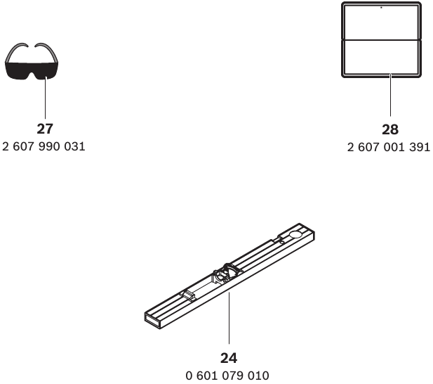 Do not point the laser beam at persons or animals and do not look into the laser beam yourself, not even from a large distance. Do not use the laser viewing glasses as safety goggles. The laser viewing glasses are used for improved visualization of the laser beam, but they do not protect against laser radiation.