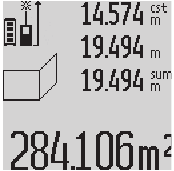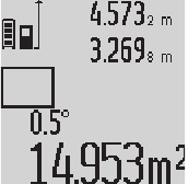 For area/surface measurements, press button 12 until the indicator for area measurement