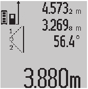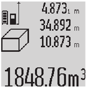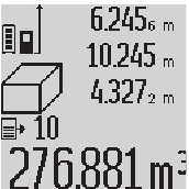 Afterwards, measure the length, width and the height, one after another, in the same manner as for a length measurement. The laser beam remains switched on between all three measurements.