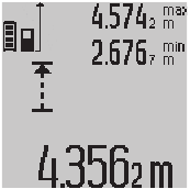 For continuous measurements, the measuring tool can be moved relative to the target, whereby the measuring value is updated approx. every 0.5 seconds. In this manner, as an example, you can move a certain distance away from a wall, while the actual distance can always be read.