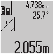 Typically, the measured value appears after 0.5 and the latest after 4 seconds. The duration of the measurement depends on the distance, the light conditions and the reflection properties of the target surface. The end of the measurement is indicated by a signal tone. The laser beam is switched off automatically upon completion of the measurement.
