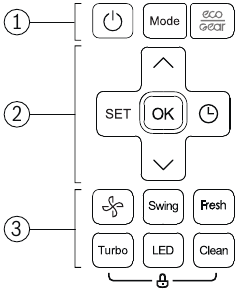 The ECO function automatically sets a temperature of 24°C if the previously set temperature is lower. The function switches off as soon as the temperature is lowered to less than 24°C.