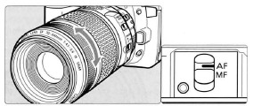 To shoot in autofocus mode, set the focus mode switch to AF.