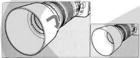 - When attaching or detaching the hood, grasp the base of the hood to turn it. To prevent deformation, do not grasp the rim of the hood to turn it.