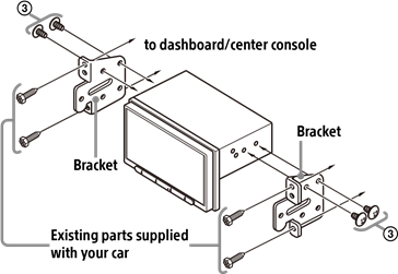 When mounting this unit to the preinstalled brackets of your car, use the mounting screws