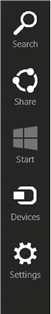 Start – Takes you to the Start screen or, if you're already on the Start screen, returns you to your last app Devices – Allows you to manage your hardware