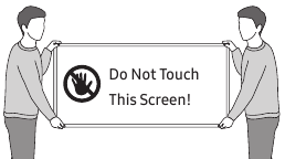 Screens can be damaged from direct pressure when handled incorrectly. We recommend lifting the TV at the edges, as shown. For more information about handling, refer to the Quick Setup Guide came with this product.