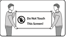 The screen can be damaged from direct pressure when handled incorrectly. As shown in the figure, make sure to grip the edges of the screen when you lift the TV. For more information about handling, refer to the Quick Setup Guide came with this product.