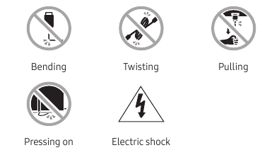 - Do not drop or strike the product. If the product is damaged, disconnect the power cord and contact a Samsung service centre.