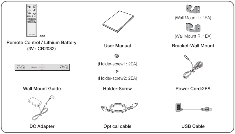 - Purchase wall mounting screws according to the type and thickness of the wall you will mount the Soundbar on.