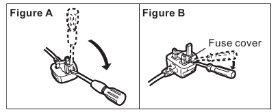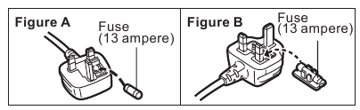 The location of the fuse differ according to the type of AC mains plug (figures A and B). Confirm the AC mains plug fitted and follow the instructions below.
