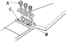 - Make sure that the fine tuning screw (C) is in the middle of its range of travel.