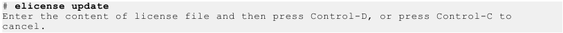 # elicense update electronic-license-file.txt - Run the command without parameters to run the command interactively.